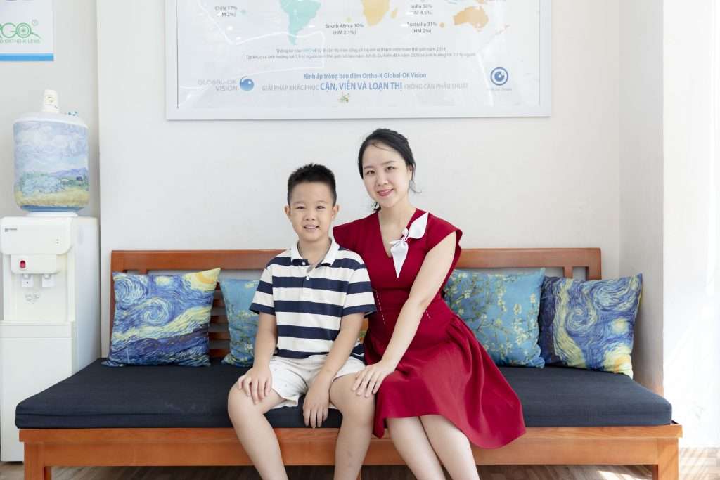 During the COVID-19 pandemic, I noticed my son squinting while watching TV and moving closer to the screen. I realized his eyesight was deteriorating. We tried using glasses and atropine eye drops to prevent further myopia progression, but his myopia continued to worsen. Then, we started orthokeratology treatment at a clinic, and I could feel the myopia progression being suppressed. At that time, orthokeratology was still a relatively new treatment method in Vietnam, so I was a little anxious, but now, after one year of treatment, his eye health is very good, and as a mother, I am very happy. My son can now enjoy sports without any issues, and his vision is stable. Thanks to this treatment, our family can live with peace of mind.(Mother’s comment)